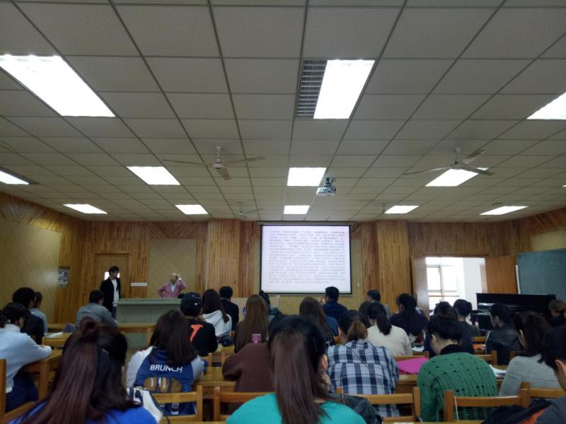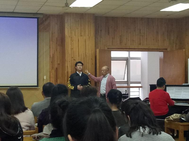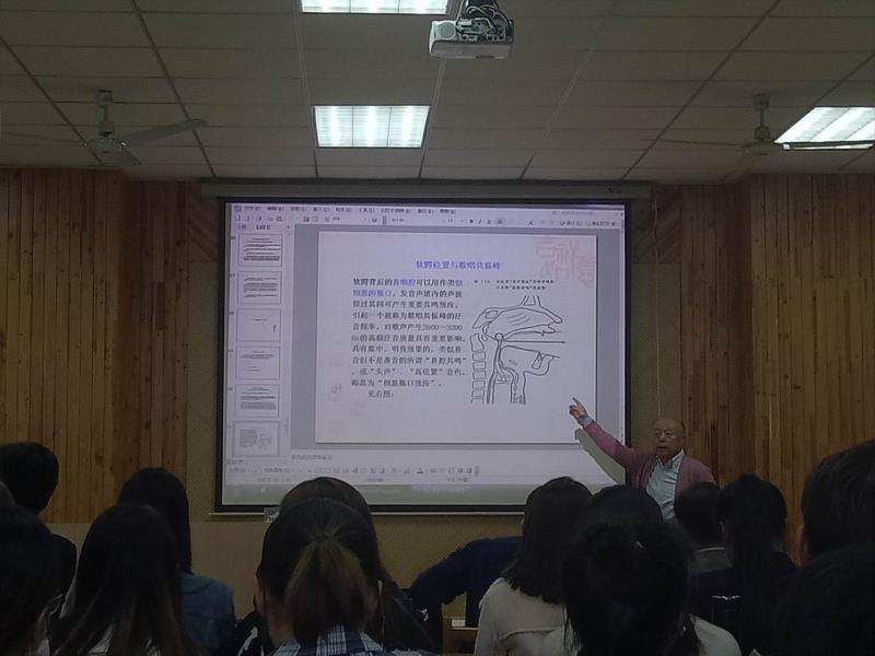 2017年11月10日中国知名声乐教育家、硕士生导师肖黎声教授来我院进行了《声乐的理论建设与观念更新》的讲学活动。讲学活动在艺术楼B409教室举行,我院音乐系师生参加此次讲学活动。