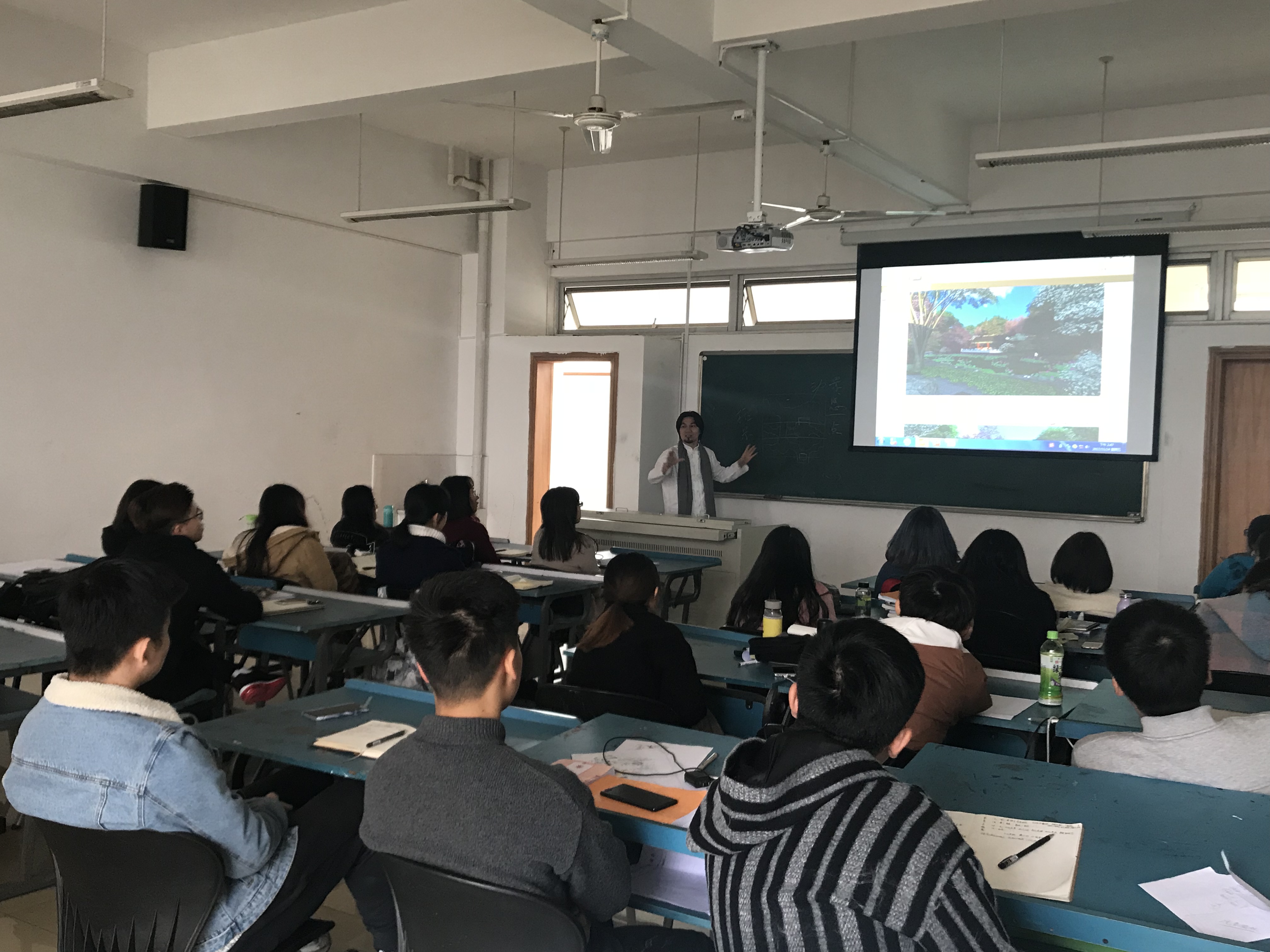 2017年11月22日上午,365足球网站官网1999届毕业生、中国农大东方创想建筑规划设计院副院长郭丽文校友来我院举办《古典庭院文化》讲座。 郭丽文校友从传统儒释道文化的角度剖析了古典庭院文化结构,阐述古典园林文化的特性,引导学生认识了古典园林文化中所含的意境。郭丽文校友还深入2015级环境艺术设计专业(景观设计)课堂,进行案例分析、讲解园林规划要点,并针对就业和实习等学生关心的问题与大家进行了深入探讨和交流。