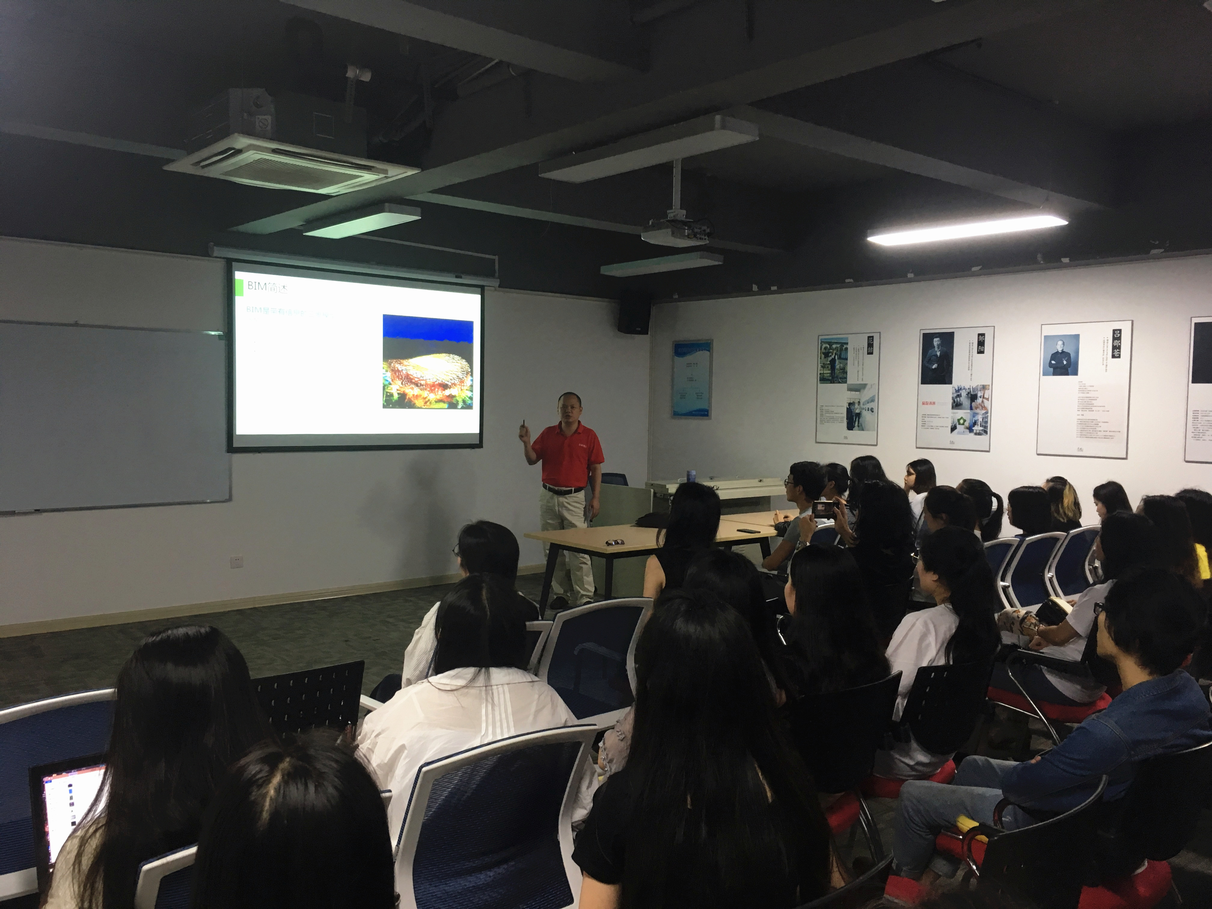 6月5日,深圳市新美智能数字科技有限公司总经理郑海波先生在南昌大学365足球网站官网康盛设计所举行了一场以《BIM在工程行业的运用》为题的讲座。室内设计专业全体师生聆听了此次讲座。
